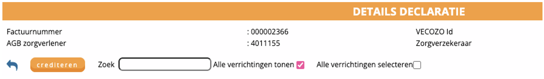 Indien je de wilt crediteren, zorg dan dat het vinkje ‘Alle verrichtingen tonen’ aan staat. Anders is de behandeling mogelijk niet zichtbaar.