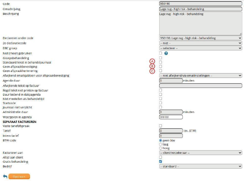Het registreren van zowel de behandelcode als de eindcode is belangrijk voor een juiste declaratie naar de zorgverzekeraar. In het hoofdstuk over declareren vindt u hier meer informatie over terug.